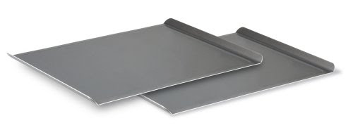 - Set of 2 aluminized steel cookie sheets with reinforced nonstick surfaces- Rolled edges reinforced with tinned steel wire for strength